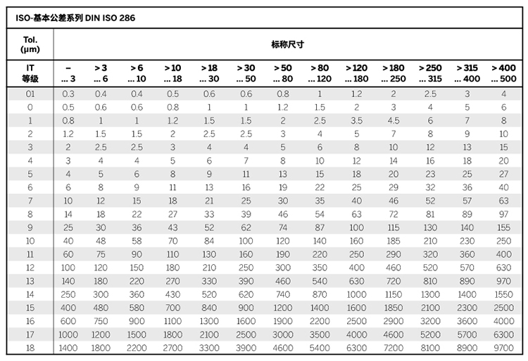 本ISO标准是标称规格尺寸系统的基础,由该表反映出和基本尺寸相关的基本公差的计算值。