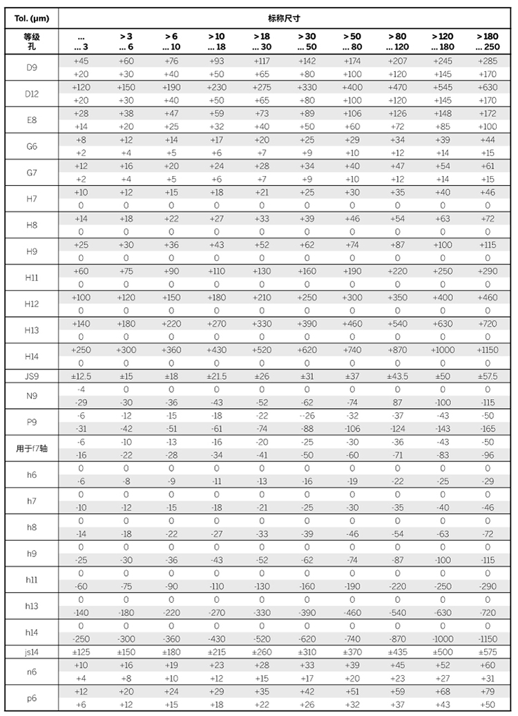 公差带H通常用于孔的数值。它确定了对应于标称尺寸的孔的最小尺寸。