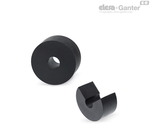 减震器主体为天然橡胶NR,黑色,硬度为40、55、70 Shore A ±5。