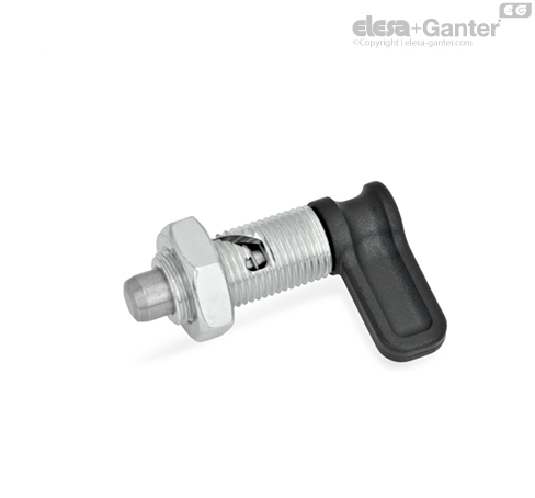 GN 712 型凸轮分度销用于柱塞销不得连续突出的应用。 当沿逆时针方向将凸轮转动 90° 或 120° 时,销头会穿过阀体中的弯曲开口。 之后,销头缩回。
