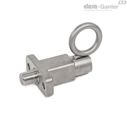 柱塞销采用 GN 722.5 分度销,通过拉环/闩锁启动。 这可以利用绳索手工完成,也可以用带钩的加长拉杆。 ST 版本设计用于钢结构应用,而 A4 不锈钢版本适用于特别恶劣的环境。
