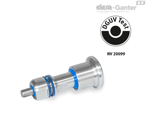 识别号 FH:旋钮侧卫生设计(前部卫生): GN 8170不锈钢分度销通过了DGUV测试指南的认证,并满足旋钮侧(前部卫生)的卫生要求。 旋钮与导向装置之间的滑片以及导向装置与外壳之间的密封圈共同作用,使旋钮侧的锁紧机构保持密封。 同时,表面质量高,无死角安装,防止污垢附着,便于清洗。