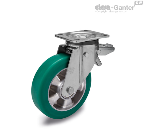 前置刹车 (RE.F2-100) 或后置刹车(RE.F2-125-160-200) 同时双重锁定滚轮与支架。