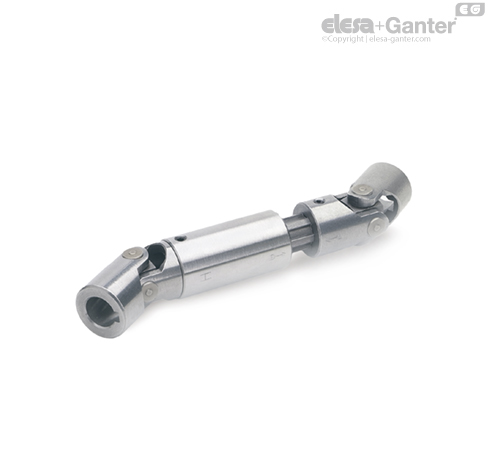 GN 808.3型带滚针轴承的万向节轴不仅可调节两轴的对准偏差,还可同时起到长度补偿的作用。可通过两个 万向节(EW型)来进行动力传输。DIN 808 (EG型)一个花键轴及一个滑动套筒. 将花键轴连接至滑动套筒时,须检查连接的准确性。连接错误会导致不规则转动和快速磨损。