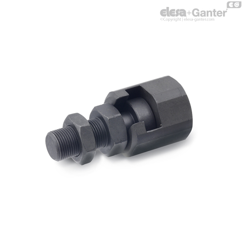 GN 240 快装式连接器设计用于 径向 和 角度 偏移的补偿。并且可通过定位螺钉轴向自由调节。典型应用场合为,在任意类型的夹具或系统中,用于与操作气缸用活塞杆的轴向连接。