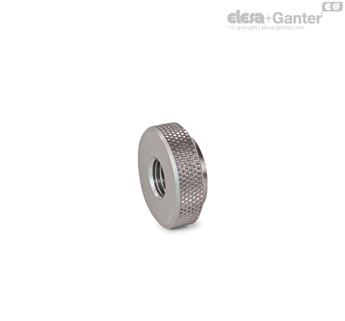 不锈钢滚花螺母GN 827.1与不锈钢调节螺钉 GN 827 配合使用,通过反锁将设置和位置固定到位。