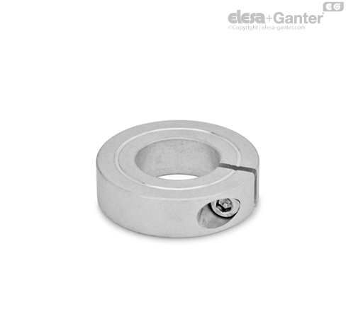 半拼合固定轴环 GN 706.2 可以通过用高夹紧力减小槽高度来安全而简便地组装,因此它们的作用和端部止动件相似。 轴的表面没有损坏。