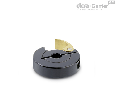 通过使用偏心杆减小槽高度来夹紧快拆式固定轴环 GN 704。