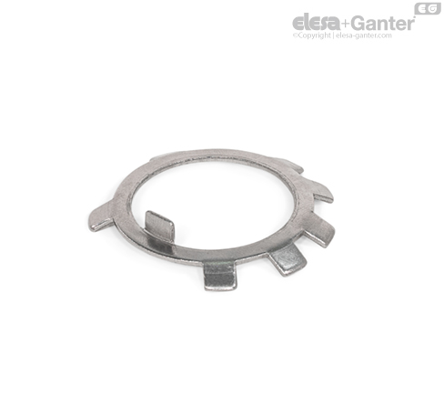 锁紧板 DIN 70952 可固定带槽锁紧螺母 DIN 70852 它通过刚性连接来防止意外的松动或调整,例如用于设定轴承轴向游隙的情形。