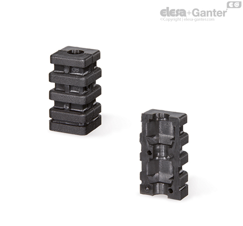 连接件的两个部分由销钉固定在一起,销钉隐藏在特制的对应卡座内。连接件内的两个空腔用于容纳一枚六角头螺钉或六角螺母。空腔为锥状,因而在拧紧螺钉或螺母时,连接件会向管材内壁施加压力,保证了连接所需的涨紧力。涨紧力的强弱取决于管材的尺寸公差、管材内壁表面的粗糙程度以及施加的拧紧扭矩。连接件无套环,可允许方形管与其它元件连接。