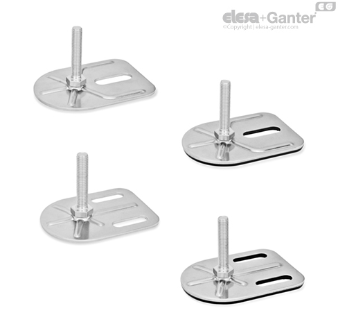 水平支脚 GN 43 适用于侵蚀性环境。 其底板与可调节螺杆款式的搭配范围,使得这些水平支脚可用于各种情况。