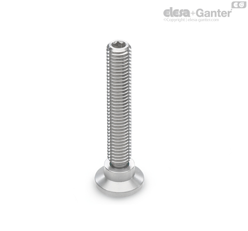 球头关节调平支脚以未组装形式供应。 如果需要,螺杆的球形止推端头可以轻松压入止推垫并再次取出。 球头直径 d3 比螺纹的内径小,这样就可以在球头的一侧拧紧螺杆。