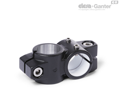 双向线性传动装置接头 GN 132.1 基于双向接头夹具。 额外提供的安装孔用于连接线性传送装置的驱动键。 名称为 G 的孔配有套筒轴承。