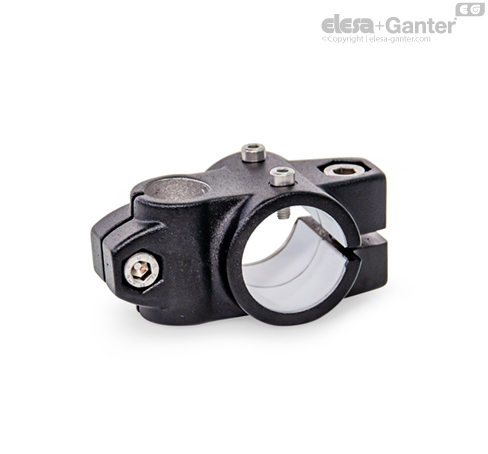 双向线性传动装置接头 GN 133.1 基于双向接头夹具。 额外提供的安装孔用于连接线性传送装置的驱动键。 名称为 G 的孔配有套筒轴承。