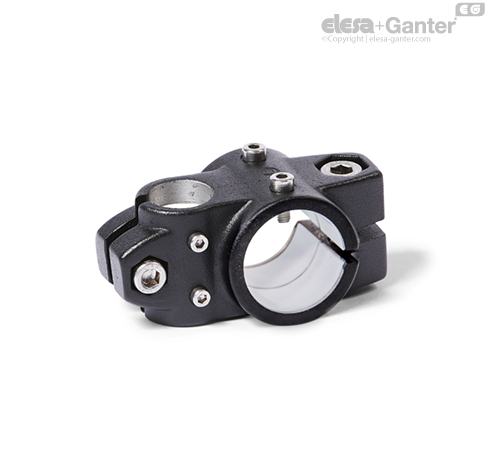 双向线性传动装置接头 GN 133.2 基于双向接头夹具。 额外提供的安装孔用于连接线性传送装置的驱动键。 名称为 G 的孔配有套筒轴承。