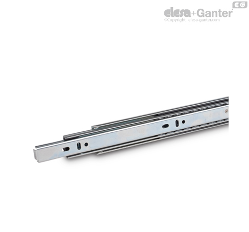 套叠式滑轨以成对方式交付。 由于结构原因,滑轨可无区分的安装在移动件的左侧或右侧。 可通过辅助孔轻易到达所有的安装孔。 仅露出安装孔,与生产相关的孔也会呈现。