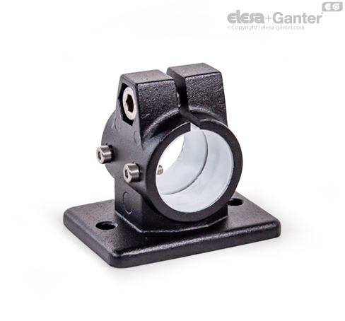 法兰线性传送装置接头 GN 146.13 基于法兰接头夹具。 额外提供的安装孔用于连接线性传送装置的驱动键。 名称为 G 的孔配有套筒轴承。