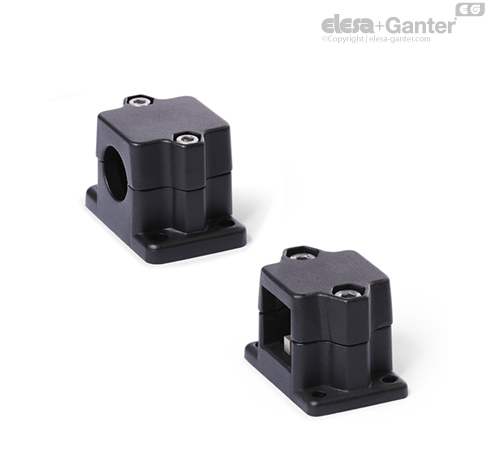 法兰线性传送装置接头 GN 147.1 基于法兰接头夹具。 额外提供的安装孔用于连接线性传送装置的驱动键。
