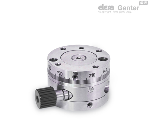 松开转盘侧面的埋头螺钉,可对转台快速调节。此外,转盘还可采用易于操作的埋头螺钉固定。两种情况下均使用内部为圆锥形的制动元件。