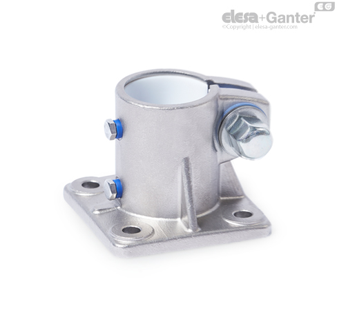 法兰线性传送装置接头 GN 163.15 基于法兰接头夹具。 额外提供的安装孔用于连接线性传送装置的驱动键。 名称为 G 的孔配有套筒轴承。