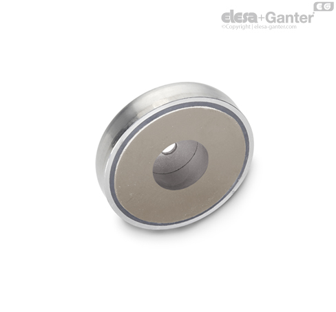 GN 50.45 不锈钢固定磁体与不锈钢外壳和塑料环/绝缘环组合成一个系统,可保护和增强磁体,确保磁通量到磁性表面的最佳传输。