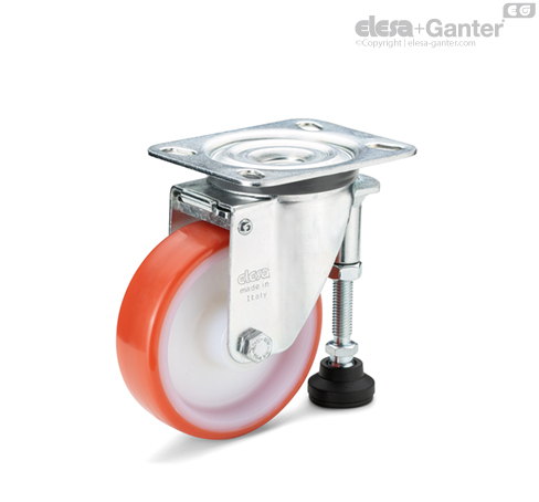 带防滑支脚的轮子可以提升手推车或机器,以确保安全操作,同时可以通过方便地调整支脚的六角螺母来保证频繁移动的可能性,有效地将固定工作站和工作设备转变成移动工作站。