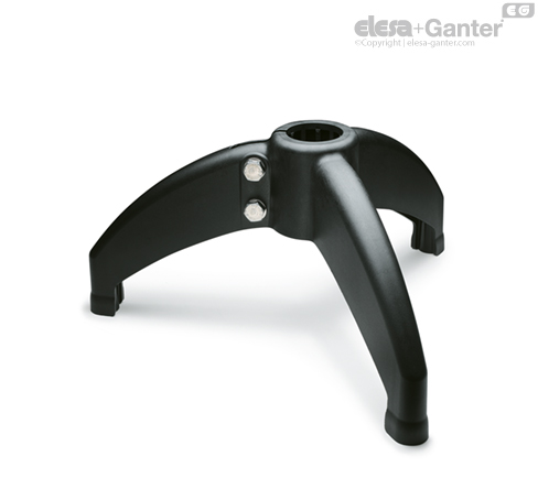 三脚支撑底座带铜毂,带用于安装水平调整件系列的螺纹通孔 LS.A, LV.A, LV.F. 。