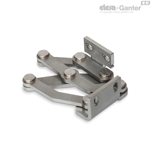 带螺纹孔的不锈钢板 GN 2372 以及带螺杆的不锈钢板 GN 2376 也可用于紧固铰链。 后者可以从外面焊接或穿壁插入,并固定到位。 所有附件项目都是为搭配二种定角件设计。