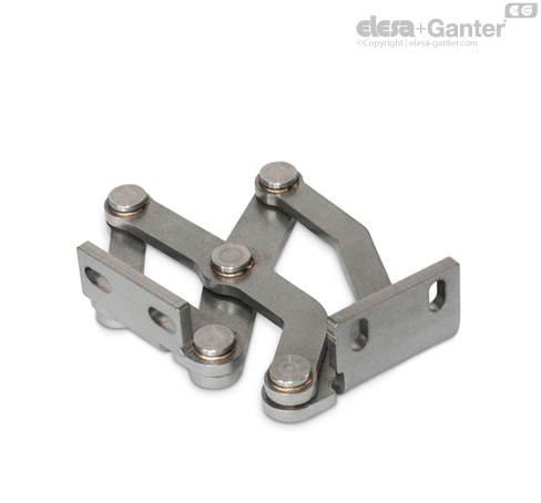 带螺纹孔的不锈钢板 GN 2372 以及带螺杆的不锈钢板 GN 2376 也可用于紧固铰链。 后者可以从外面焊接或穿壁插入,并固定到位。 所有附件项目都是为搭配二种定角件设计。