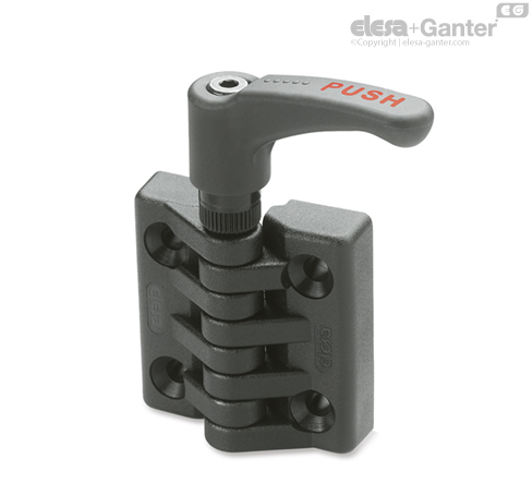 通过使用特殊可调手柄来夹紧两片合页,以达到摩擦效果。