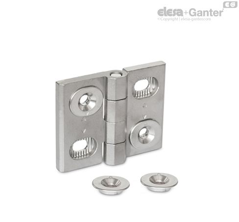 采用 GN 127 铰链后,各种门和罩盖可以通过移动调整衬套实现紧密、精确地定位。 通过这种方式,门的间隙可以重新调整,制造公差也能得到补偿。 箭头标记可调范围 w 的中心。