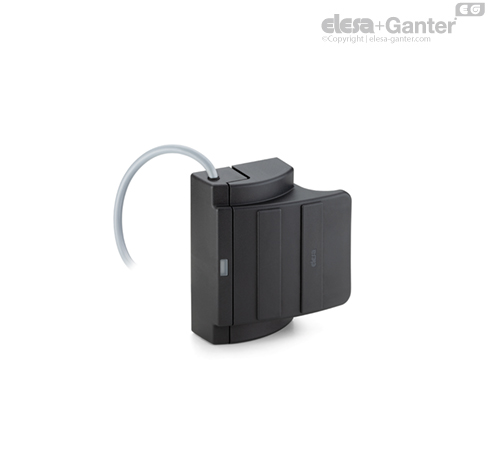 ESC-SFT 手柄必须将配有电缆/接头出口的配套部件端安装在固定部分(结构底盘)上,将手柄端安装在移动部分(门)上。