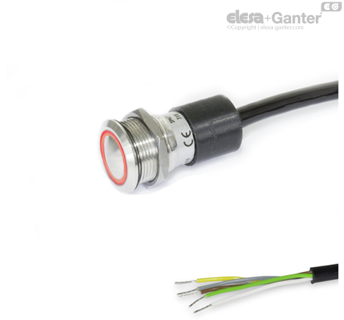 无论是否按动按钮,集成的LED环形指示灯都会发出红光或绿光,具体颜色取决于LED的连接1和2的极性。